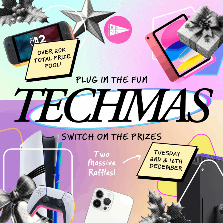 Two huge draws packed with the hottest tech of the season! 💥 Each ” TECHMAS” raffle is valued at $10,000, with prizes drawn on Tuesday 2 December and Tuesday 16 December right here at the Club.