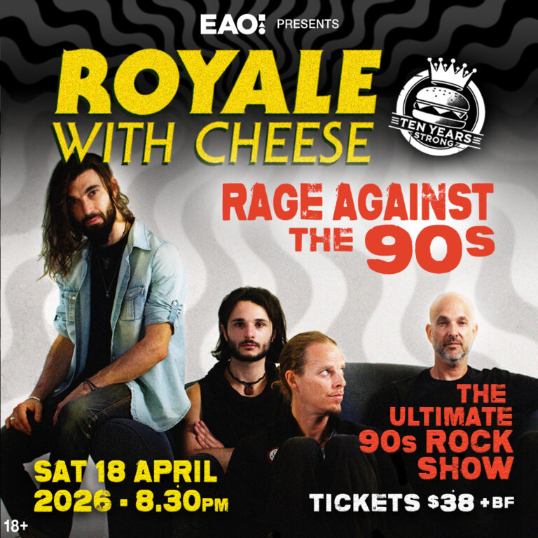 From Nirvana, Pearl Jam and Soundgarden to Radiohead, Blur and Oasis to Silverchair, You Am I and Screaming Jets to Red Hot Chilli Peppers, Green Day and Blink 182, Royale with Cheese magically weaves all these 90s sounds into a night that’ll have you feeling nostalgic for the last great decade of rock music! Come as you are to smash pumpkins and RAGE AGAINST THE 90s!
